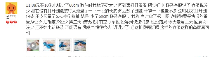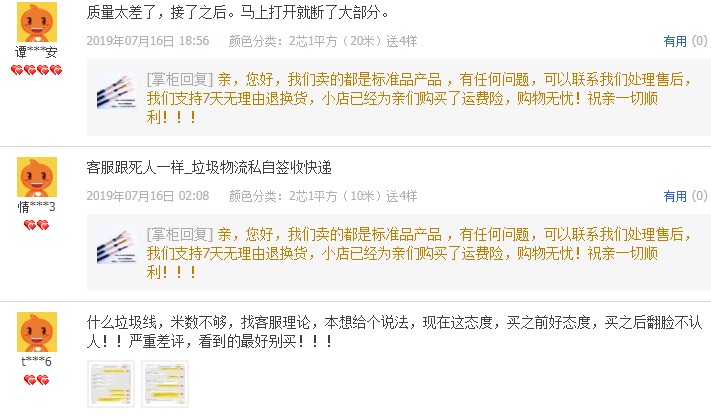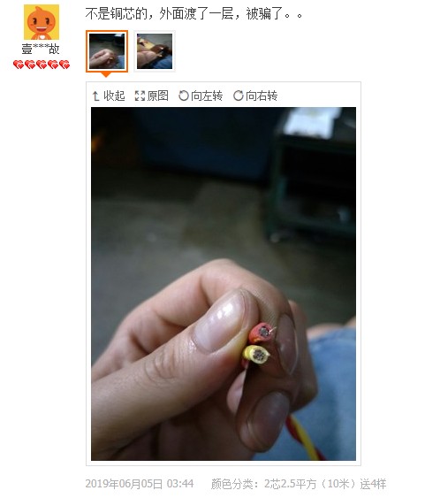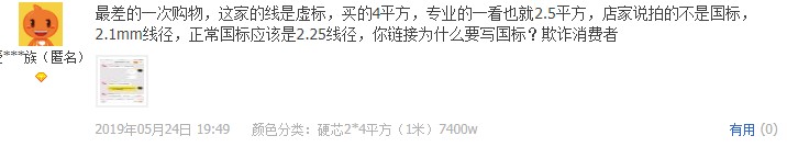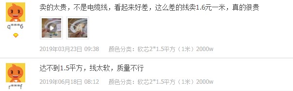 評價截圖有很多,我這邊就不一 一發(fā)出來了,總結(jié)幾個特征,冒充國標,截面積虛標,米數(shù)不足,導體斷線,鋁鍍銅,這個就是低價的本質(zhì),如果你是買回家當擺設并且不怕刺鼻味的,盡可能多買點,其余用途作為晾衣繩都怕斷。
