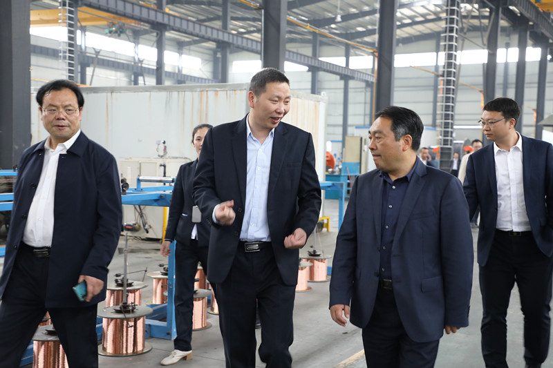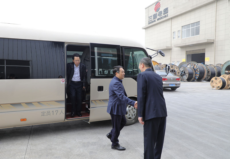 (王雄在調研時詳細詢問了三湘電纜各方面情況,并聽取了三湘電纜董事長申旺的相關匯報)